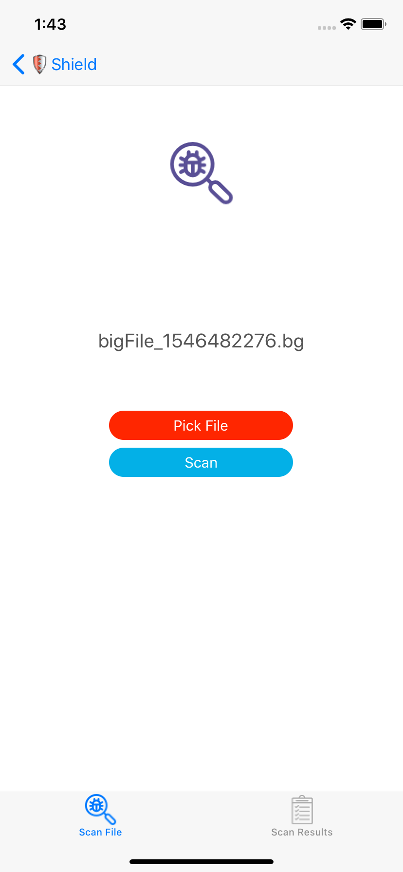 First, the user pick a file from his files to scan, then it get uploaded to be scanned. Next, the user can check scan report at the results tab. Scan report is persistent on the device once it get fetched. This service is provided by VirusTotal API.