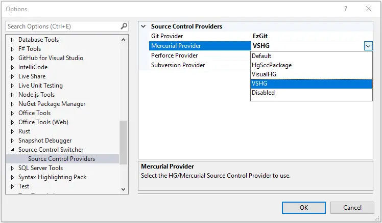 Once done, your favourite Source Control Provider will be automatically set everytime you open an existing project or solution.
