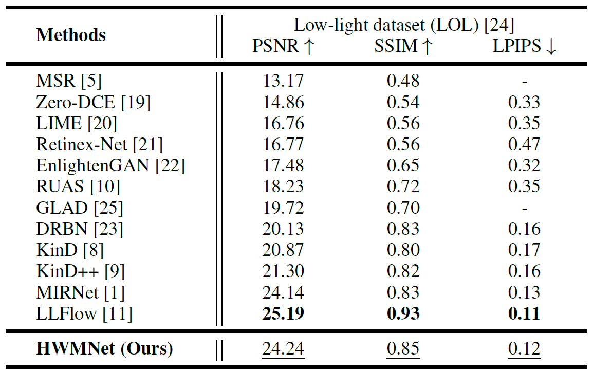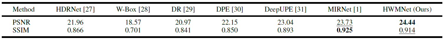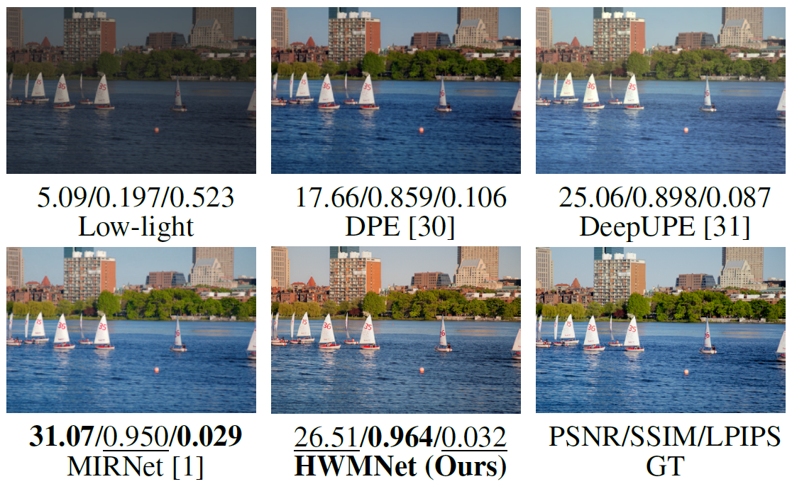 Abstract : Low-Light Image Enhancement is a compute vision task which reinforces the dark images to appropriate brightness. It can also be seen as an ill-posed problem in image restoration domain. With the success of deep neural networks, the convolutional neural networks surpass the traditional algorithm-based methods and become the mainstream in the computer vision area. To advance the performance of enhancement algorithms, we propose an image enhancement network (HWMNet) basing on an improved hierarchical architecture model: M-Net+. Specifically, we use a half wavelet attention block on M-Net+ to enrich the features of wavelet domain. Furthermore, our HWMNet has competitive performance results on two image enhancement datasets in terms of quantitative metrics and visual quality.