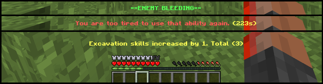 - Combat abilities (i.e. swords bleeding, taming gore)