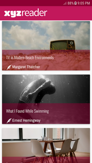 XYZ Reader is Article reading application required by The Android Developer Nanodegree program, it's the Project No. 6.