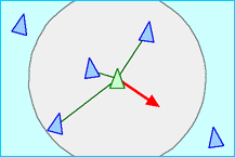 - Separation - "steer to avoid crowding local flockmates" - refers to the tendency of an individual agent to maintain a minimum distance from its neighboring agents. This principle helps to prevent collisions between agents and maintain a sense of personal space. By avoiding collisions, agents can move freely within the flock, which contributes to the overall fluidity of the flocking behavior.