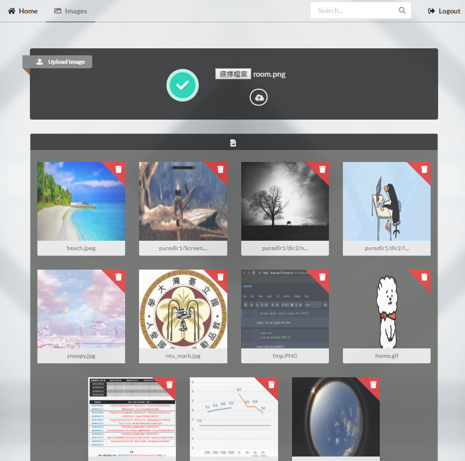 The project contains a simple web application which supports image uploading and image searching. It could be viewed as a temporary or private cloud space that manages the images you uploaded.