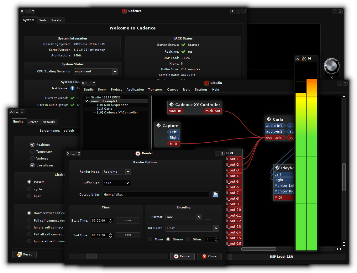 This is one of the very first projects I started, as a way to learn GUI programming and have something useful for managing JACK and Linux audio. All code was initially written in Python with Qt as the GUI, with a few tools later converted to C++ for having proper realtime performance.
