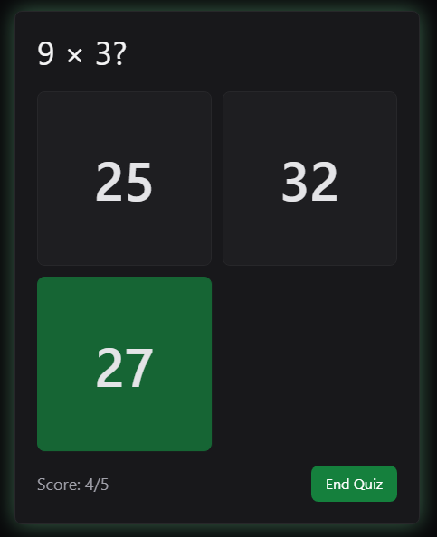 MathScroll Doomscroll into a math quiz! 💢. Tech Stack Nuxt Features New random question every time it's answered Random number of choices Dark Mode Only Unresponsive UI Installation git clone https://github.com/g4mless/mathscroll.git npm Install npm run dev Screenshots