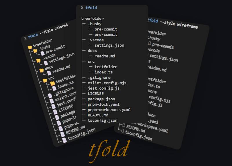 # show treeview of the current directory tfold # or show treeview of any directory tfold <some-path-to-be-used-as-tree-root>