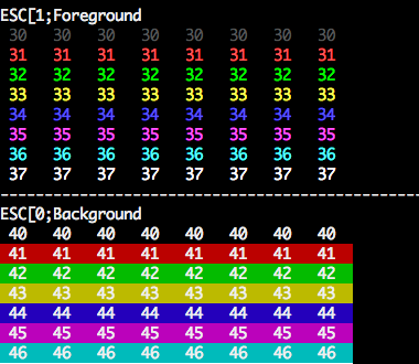 var txt = "\n\n\033[1;33;40m 33;40 \033[1;33;41m 33;41 \033[1;33;42m 33;42 \033[1;33;43m 33;43 \033[1;33;44m 33;44 \033[1;33;45m 33;45 \033[1;33;46m 33;46 \033[1m\033[0\n\n\033[1;33;42m >> Tests OK\n\n"