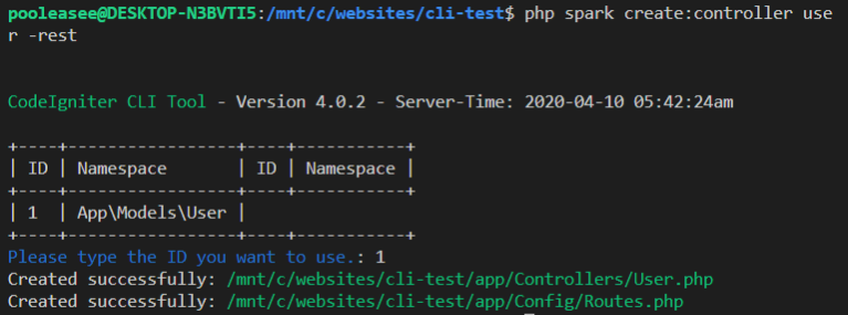 $ php spark create:controller [controller_name] [controller_options] -model [model_name]- The options provided using the "Create: Model" command are not used.