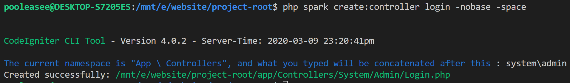 The namespace in Codeigniter usually maps the actual file storage path, so using this command will automatically create folders according to the value you entered.